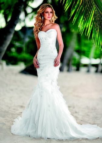 White stone will harmonize perfectly with the flowing wedding dress on the floor. If you select earrings from the same stone to the ring, the image will turn out to be very modern and worthy of the upcoming event.