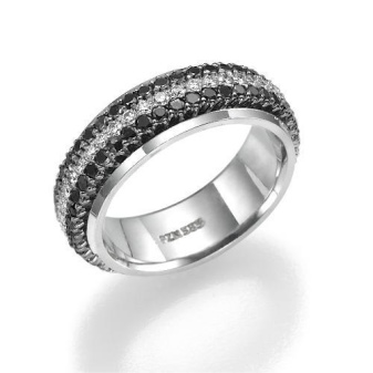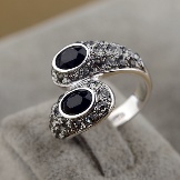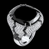 Such a ring attracts attention with the contrast of color schemes. Luxury jewelry with black and white stones usually belong to the elite collections of famous masters. The interweaving of white and black stones in the form of a snake looks interesting and stylish.