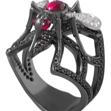 Famous jewelers offer in their collections a ring path with black diamonds. Such a piece of jewelry looks unusual and spectacular. Today, experts create amazing new products, offering a variety of forms. A real sensation was made by a model represented by a curve with three rows of teeth, decorated with diamonds. The total weight of the ring was 0.55 carats.