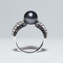- A ring with pearls and a diamond looks interesting and unusual.Pearls very often adorn women's rings, as it personifies tenderness and femininity. This mineral is characterized by a bright shine, because it has a layer of nacre. The greater the thickness of the pearl layer, the more intense the gloss. Jewelers skillfully combine delicate pearls and black diamonds. Such a tandem looks unforgettable.