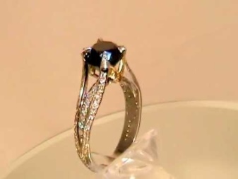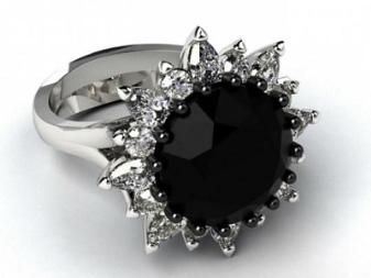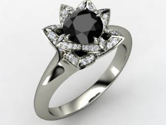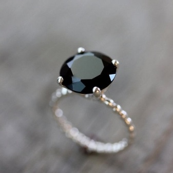 Popular jewelry houses produce designer jewelry with such a stone of silver. It is found that a silver ring with a black diamond is more expensive than a factory jewelry made of gold. The most expensive option is a stone in a platinum frame.