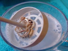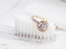 To clean the ring with cubic zirconia from visible plaque, you will need a soft cloth and soap solution. For one liter of water, take one teaspoon of soap.In this solution, the decoration must be kept for about 20 minutes, and then rinsed under water.