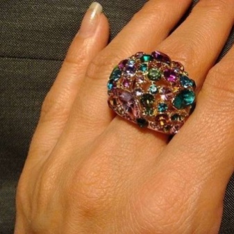 Arriving at a jewelry store, one can often find jewelry combining stones of several colors at once. Such multi-colored rings will look cheerful and at least interesting.