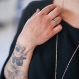 It should be said that emerald is a self-sufficient mineral. He does not need to emphasize his greatness with clothes of a certain tone. A ring with it will be easy to combine with elegant clothes. The classic option is to wear a beautiful emerald ring with a cocktail or evening outfit. Also, this is a great solution for wedding dresses, because this mineral goes well with the corresponding color.