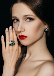 At the same time, you can see rings with the so-called path with emerald. The bottom line here is several stones of about the same size, arranged one after another. They seem to form a path. Earrings with emerald are well suited to such a decoration. They will complement it perfectly.