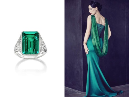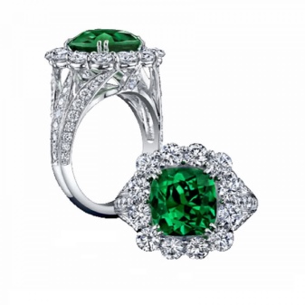 If we talk about interesting design solutions, it should be understood that their price will be significantly higher than usual, because these things are often exclusive. Often, such products use emeralds of an unusual shape, for example, in the form of a drop or a cube. Especially in this stands the emerald ring Alexandra Anastasia Lisowska Sultan from the series of the same name, in the center of which is a large teardrop-shaped emerald surrounded by a large number of diamonds.