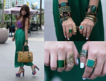 If you have a set of jewelry with emeralds - you should not wear all at the same time. It is better to break such a set into different combinations - a ring with a bracelet and so on.