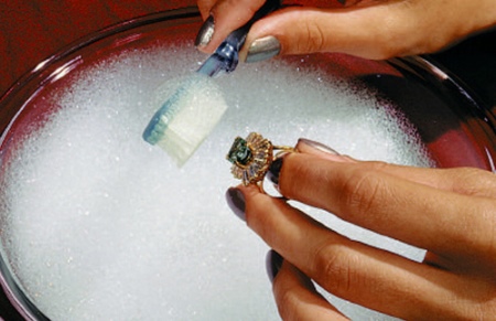 - If for some reason this is not possible, then you can just put the jewelry in a soapy solution all night, and in the morning rinse with water and rub it with a soft-type toothbrush.