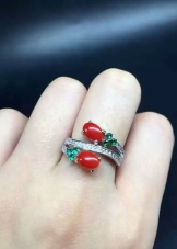 For sensual and passionate people, a decoration with a red stone is ideal. The most striking and popular are stones such as pomegranate or ruby. They are able to give the lady more self-confidence and make her image more sexy. Minerals of such a saturated color look perfect in yellow or pink gold.