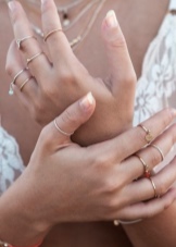 - As a rule, neat rings with a small stone look harmoniously on young beauties. They emphasize their natural charm and give the image an unobtrusive shine.