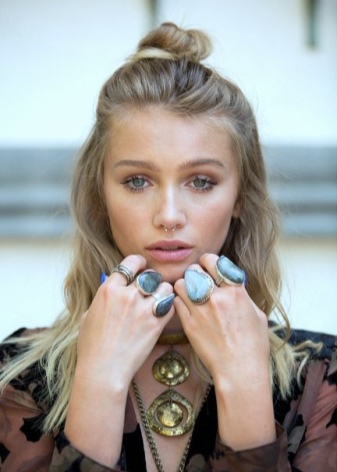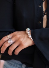 - On a wide palm, products with tiny pebbles are simply lost and no longer noticeable. It is recommended to choose jewelry with a large stone.