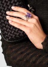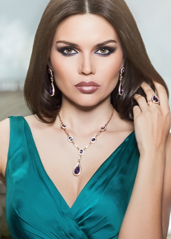 If you want to get a really bright and unusual decoration, then you should pay attention to accessories with a purple stone. The most common mineral of this color is amethyst. It looks perfect with all precious metals. A similar thing can add royal notes to the image.