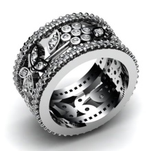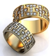 Wide rings are expensive and luxurious. Today, models in the form of a royal crown or a cunning plexus of pattern lines in which small gems are placed are especially in demand.