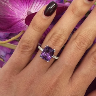 Feminine and mysterious look products with amethyst. This stone is the most expensive variety of quartz.It can have many shades: from light purple to bright blue. Rings with such a detail look just amazing.