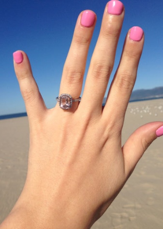 Gentle and flirty natures should turn to jewelry with pink stone. For example, rings with charming quartz can soften many stylish images and emphasize the natural charm of its owner.