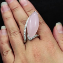 A ring with rose quartz looks especially gentle and beautiful. It radiates positive energy, calms and relaxes.