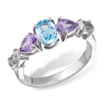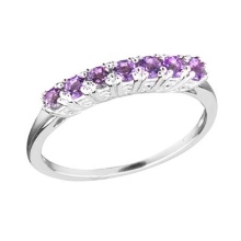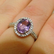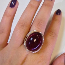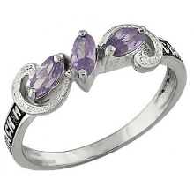 Silver ring with a purple stone, for example, with amethyst. Shades of this color are perfectly combined with sparkling silver. Amethyst ring is often used as a talisman.