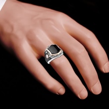 Silver with black stone looks luxurious due to the bright contrast. This jewelry is perfect as an everyday or holiday addition to the image of both men and women.