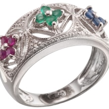 Silver ring with blue, green, red, brown mineral and stones of other colors are made in a variety of stylistic decisions. These can be classic single-stone rings or vintage jewelry with a mix of stones. Different models differ from each other in size, shape, quantity and location of precious and semiprecious stones.