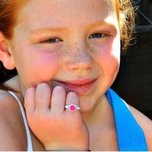 Thin beautiful rings with small multi-colored pebbles are perfect for a very young fashionista as a memorable gift. It’s not necessary to choose too expensive and artsy option. On a children's hand a ring with cubic zirconia or a moonstone in silver will look very harmonious.
