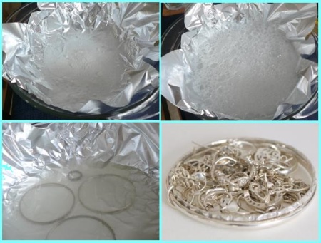 Most often, such methods are used to clean silver rings without stones.For jewelry with stones in the jewelry store you can buy a special tool for cleaning it.
