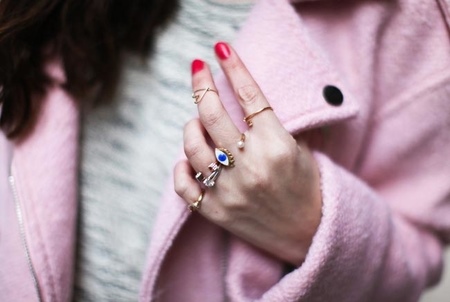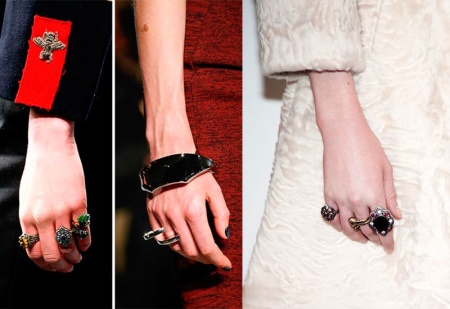 Large, massive rings are often the only decoration on the hand. But several small, neat little rings can simultaneously decorate several fingers.