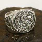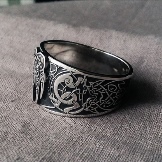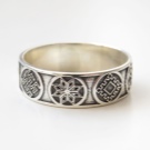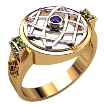 In ancient Slavic mythology, Veles is the patron saint of agriculture. Its symbolism on the rings brings luck, wealth, gives its owner wisdom and devotes to the secrets of life. The totem animals of Veles were considered a bull, a wolf and a bear. Rings with images of these animals develop mental abilities, improve intuition, which allows you to protect yourself from fraud scams.