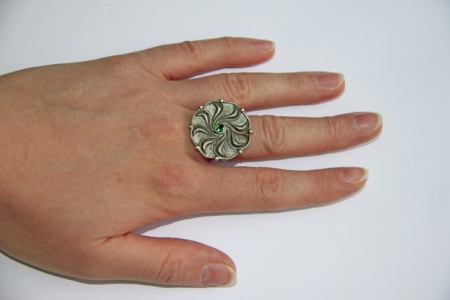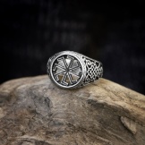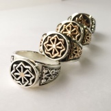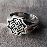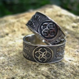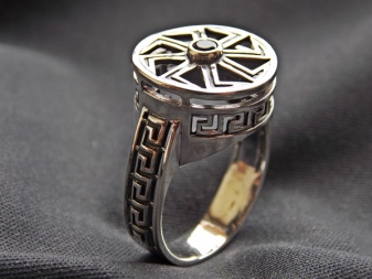 Kolovrat rings can be complemented by a symbol of longevity - the Serpentine. Such rings are decorated in the center with a green stone, enhancing the protective properties of the jewelry. Kolovrat-Coil gives good health and remarkable strength. They protect wealth, bring success.