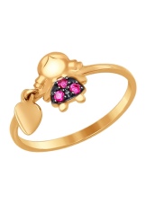 The “girl” ring will surely attract attention thanks to the pink pebbles of a round shape. A similar decoration can be presented as a gift to a lady at the birth of a daughter.