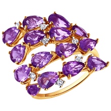 If you want to create a truly royal look, then you should pay attention to the collection of accessories with amethyst. The brand produces completely different models of rings with stones of light and dark colors. Many specimens are complemented by multi-colored cubic zirconias and diamond paths.