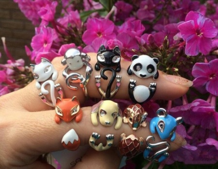 These original models of rings are made in the form of different animals: cats, foxes, bunny, mice, squirrels and pandas, hugging a finger.