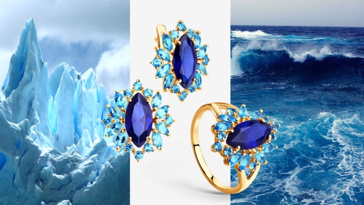 For tender and romantic natures, Sokolov produces magical rings with topaz. It is impossible not to fall in love with this stone, and it looks great in any edging. Particularly popular are products in the shape of a heart or a large flower, in which each petal is inlaid with blue and blue pebbles.