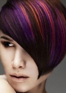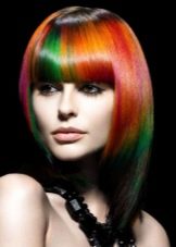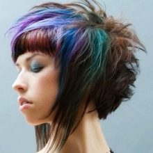 Such a hairstyle will only complement the general an image of unpredictability and originality. However, you should not overdo it with the number of shades, everything should be in moderation. A good option would be multi-color coloring bangswhere the rest of the hair remains unchanged.