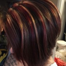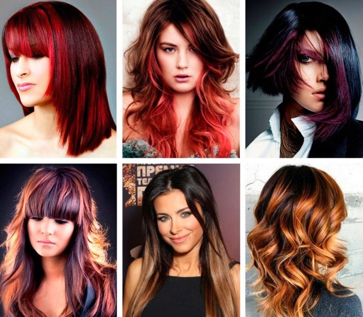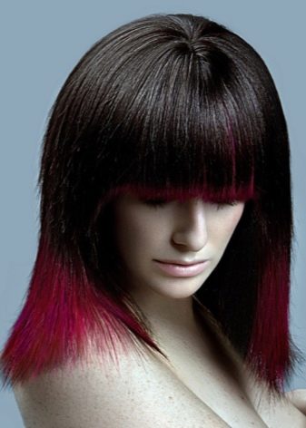 The easiest type of coloring in coloring - in this case only strictly defined part (or parts) of hair. The peculiarity of this species is that dyed hair should simultaneously stand out harmoniously and brightly against natural ones, otherwise there will be no benefit from the effect. For dark hair, the widest range of colors will come in handy: from light golden to bright berry.