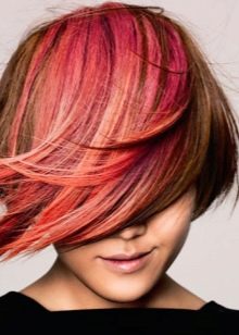 - Partial contrast staining using aggressive and often even incompatible shades (red with yellow, blue with orange, etc.). This type of coloring is more suitable for extraordinary individuals or is used to create a specific image in model shootings.