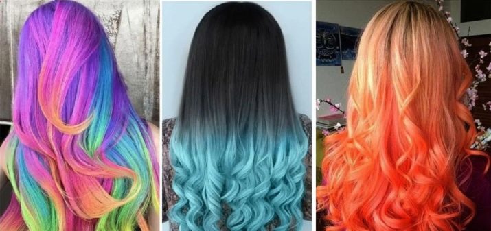 - horizontal coloring of heavy heavy curls with significant color gradation (shades can be very different: from chestnut to red and bright neon);