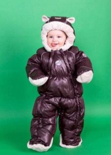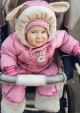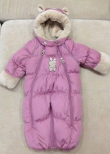 The Teddy jumpsuit has a sheepskin lining and booties. It is suitable for spring or autumn, as well as for cold winters. The ears on the hood look cute. Some models have natural fur around the edge of the hood, which also serves as a decor.