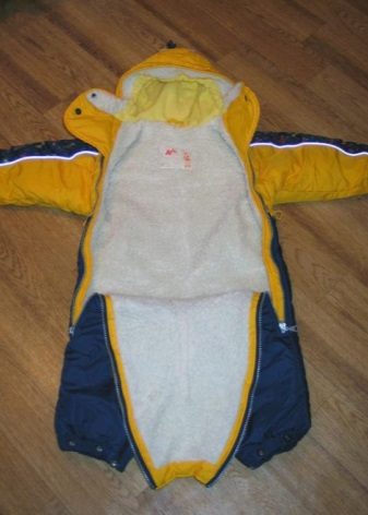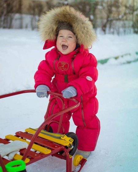 For children two to three years old, a jumpsuit with a hood is ideal. For harsh winters, preference should be given to down models. An envelope with down insulation is ideal for long walks. It contains 80 percent fluff and 20 percent feather.