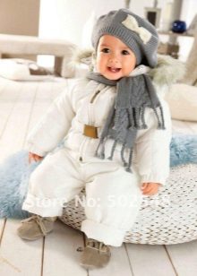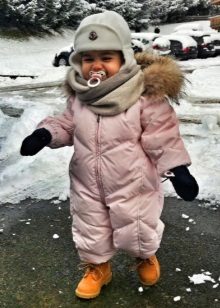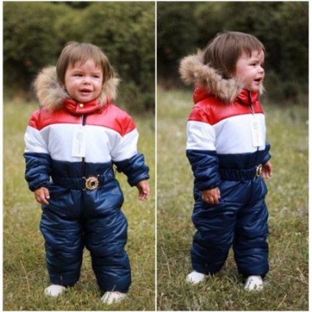 It is better to buy fusion models for the smallest children, from birth to two years. They are very easy to wear and undress even a sleeping baby. Even if the baby has already begun to walk, he will be very comfortable in one-piece jumpsuit. The wind will not blow out under the jacket and no snow will fall over the collar.