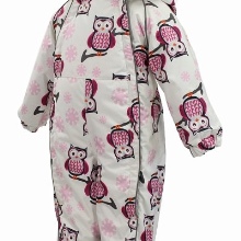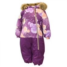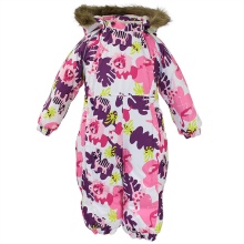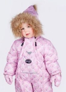 The purple jumpsuit is versatile. It is ideal for both boys and girls. Huppa coveralls are visually divided into two parts. The bottom is a one-color solution, and the top is adorned with a delightful print. On a purple background, pink, white and yellow snowflakes or flowers look beautiful. The brand often uses original designs.