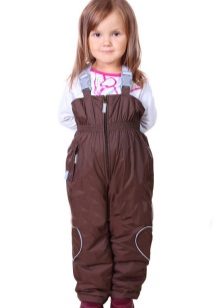 Children of preschool or school age can wear a set of jackets and semi-overalls. This option is more practical, since the straps on the semi-overalls allow you to adjust the length of the product. Even with active growth, the child will be able to vilify the kit for more than one season. The semi-overalls have trousers at the bottom of the trousers to prevent the ingress of snow or moisture inside. There are elastic bands on the sleeves, and the zipper closes on the bar, which at the top prevents the child’s skin from touching the zipper.