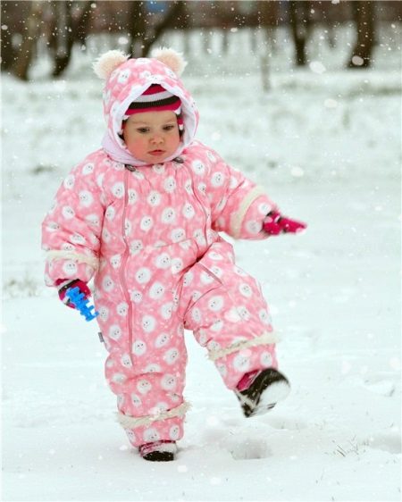 The hood tightly covers the head, as it is equipped with a rubber band. Reflective elements have a protective function, and also act as a decor. The insulated jumpsuit is ideal for a harsh winter, and is also thin and light, which allows the baby to be active on the street.
