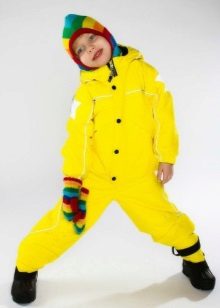 The overalls of yellow, light green or blue color look beautiful and stylish. The saturated yellow color model is universal. It is ideal for both girls and boys.