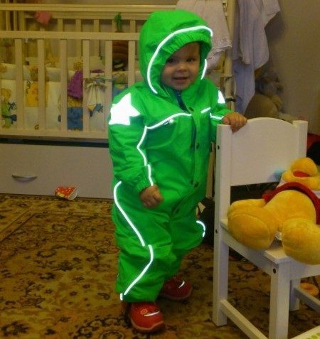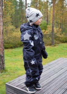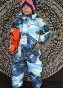 Special cuffs on the legs prevent snow from entering the shoes. The jumpsuit has an unusual print. Bright stars are reflective, which ensures the safety of the child in the dark. Another advantage of overalls is the washing and drying of the product in the washing machine.
