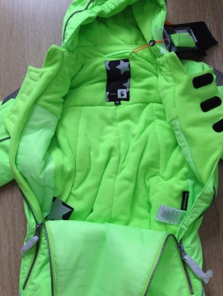 As a filler for this model, the developers chose tinsulate, because it allows you to save heat. Additionally, the jumpsuit has fleece inserts that also do not allow cold air to pass through.