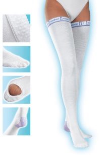 Any compression garment must be worn correctly, the only way to achieve the desired result when using it. Medical underwear (most often these are knee-high socks, stockings or tights) should be worn immediately after waking up, not yet getting out of bed, until fluid begins to accumulate in the legs, which subsequently leads to the appearance of edema.