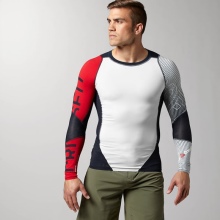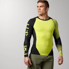 - Long sleeve shirts provide protection for the muscles of the arms and torso. Most often, such a model can be found on athletes involved in mixed martial arts. It protects against abrasions and burns from the mat. During breaks, it does not allow the muscles to cool, which avoids minor injuries in the form of sprains or ruptures of ligaments. Some T-shirts have special silicone inserts that fix the edges of the clothing and insure against twisting.