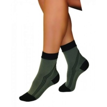 This type of compression underwear, such as socks, is less popular than the same socks, stockings or tights, but it is highly in demand in a medical or sports environment. Socks are used to prevent the expansion of veins due to the nature of the work, increased weight or prolonged physical activity in sports. The principle of operation of compression socks is to squeeze a varying degree of blood vessels in the lower leg and prevent their expansion.