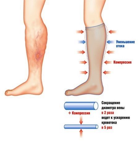 Just so that such changes in loads do not lead to varicose veins, it is recommended to use elastic compression, which “straightens” the venous valves and facilitates their functioning. The narrowing of the lumen of the vein as a result of the use of compression hosiery leads to an acceleration of blood flow, thus preventing the formation of blood clots.