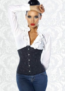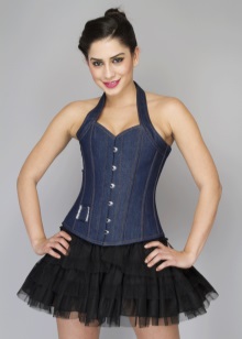 2. Denim corsets are usually considered an everyday option.. They are universal and practical, therefore, on their basis you can create a large number of diverse images. On such corsets embroidery, rhinestones, beads and other decor will be appropriate, which will give the product brightness and make it expressive.
